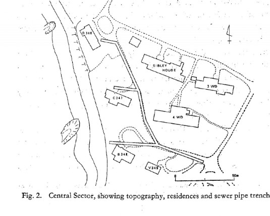 Alle Fundstellen befinden sich auf einem Areal von weniger als 100 qm, auf dem Plan links südlich des Hauses B348 (unten links), etwa in der Breite der Terrasse bis an den Rand des Steilhangs im Westen, oberhalb der Einbuchtung (die auch oben etwa so stark ist wie unten).