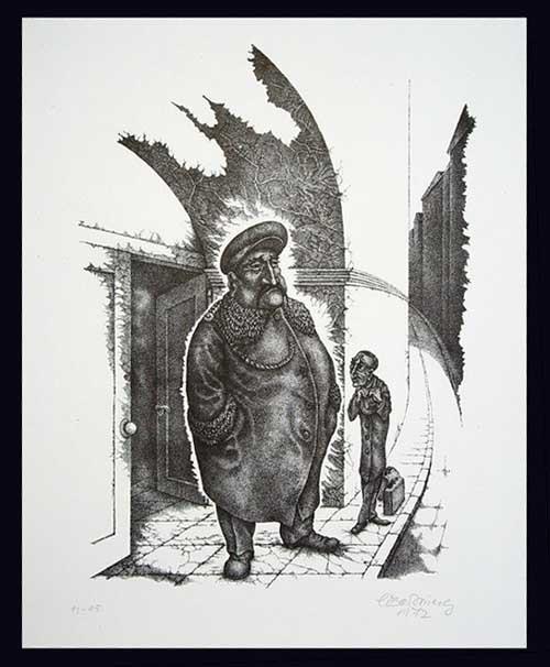 Solche Schwierigkeiten hat der Mann vom Lande nicht erwartet; das Gesetz soll doch jedem und immer zugänglich sein, denkt er, aber als er jetzt den Türhüter in seinem Pelzmantel genauer ansieht, seine grosse Spitznase, den langen, dünnen, schwarzen tatarischen Bart, entschliesst er sich, doch lieber zu warten, bis er die Erlaubnis zum Eintritt bekommt.