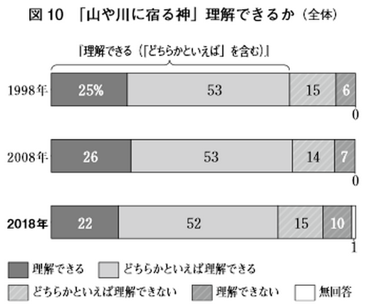 Dass noch manches von traditioneller Religiosität, oft vielleicht unterschwellig, auch heute noch in Japan weiterlebt, lässt sich an der hohen Zustimmungsquote (79-74%) zu der folgenden Frage ersehen (ISSP 40):